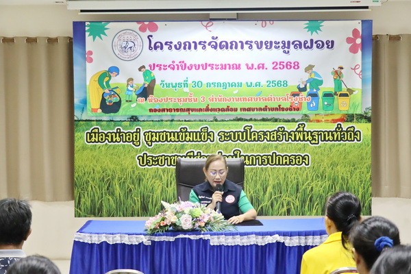 วันที่ 30 กรกฎาคม 2568 นางอัฏฐวัฒน์ บรรจงพินิจ นายกเทศมนตรีตำบลโรงช้าง คณะผู้บริหาร สมาชิกสภาเทศบาล และพนักงานเทศบาลตำบลโรงช้าง จัดทำโครงการจัดการขยะมูลฝอย ประจำปีงบประมาณ พ.ศ. 2568 โดยโครงการมุ่งเน้นการให้ความรู้และส่งเสริมการคัดแยกขยะ เพื่อให้ประชาชนมีส่วนร่วมในการลดขยะครัวเรือนลดปริมาณขยะที่ต้องนำไปกำจัดและการนำขยะกลับมาใช้ประโยชน์